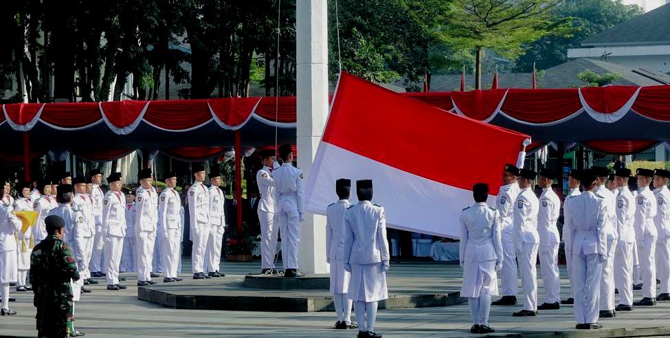 TMN/BANDUNG – Upacara Peringatan Hari Ulang Tahun (HUT) ke-80 Republik Indonesia tingkat Kota Bandung berlangsung khidmat di Plaza Balai Kota Bandung, Minggu 17 Agustus 2025. Wali Kota Bandung, Muhammad Farhan, bertindak sebagai Inspektur Upacara yang diikuti jajaran Forkopimda, ASN, pelajar, hingga masyarakat.